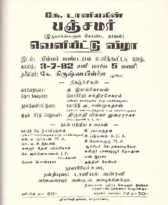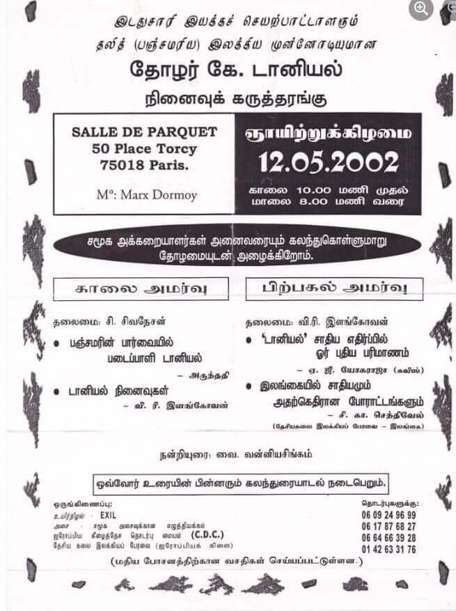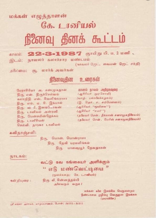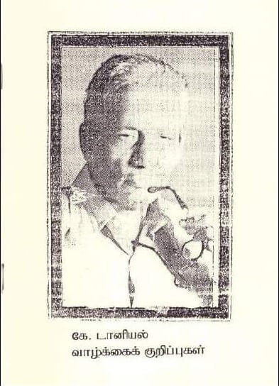 யாழ்ப்பாணம் – ஆனைக்கோட்டை என்னும் இடத்தில் பிறந்தவர். தொடர்ச்சியான வாசிப்பின் மூலம் புகழ்பெற்ற எழுத்தாளராகும் வாய்ப்புக் கிடைத்தது. புரட்சிதாசன் என்ற புனைபெயரில் எழுத்துலகில் அறியப்பட்ட போதிலும் பொதுவுடமைக் கட்சியாளராகச் செயற்பட்டு முற்போக்கு எழுத்தாளர் என்று புகழ்பெற்றார். அரசியல் நோக்கிற்கு ஒரு கருவியாகவே எழுத்தாக்கங்களைப் பயன்படுத்தி வருகின்றேன். எழுத்து எனக்கு தொழிலல்ல என்று கூறிய டானியலவர்கள் தமிழகத்து மணிக்கொடி இதழைப்படித்து அதன் எழுத்தாளராக மாறினார். சுதந்திரன், ஈழகேசரி, தேசாபிமானி, தினகரன், வீரகேசரி முதலிய ஏடுகளில் அவர் ஆக்கங்கள் வெளிவந்தன. தமிழக இதழ்களான சரஸ்வதி, தாமரை இதழ்களிலும் எழுதியது மட்டுமன்றி தமிழகத்திலும் புகழ்பெற்றார்.டானியலவர்கள் கட்டுரை, நாடகம், சிறுகதை, நாவல், குறுநாவல் ஆகிய துறைகளில் மிகுந்த படைப்பாளியாக விளங்கினார். டானியல் கதைகள்-10, உலகங்கள் வெல்லப்படுகின்றன-13, முதலிய சிறுகதைகளும் பஞ்சமர், போராளிகள் காத்திருக்கின்றனர், கோவிந்தன், அடிமைகள், கானல், தண்ணீர், பஞ்சகோணங்கள் ஆகிய நாவல்களும் பூமரங்கள்,கே.டானியல் குறுநாவல்கள் ஆகிய குறுநாவல்களும் நூல்களாக வெளியிடப்பட்டுள்ளன. கே.டானியல் கடிதங்கள், என்கதை என்ற நூல்களும் வெளிவந்துள்ளன. 1986-03-23 ஆம் நாள் வாழ்வுலகை நீத்து நிலையுலகம் சென்றார்.
