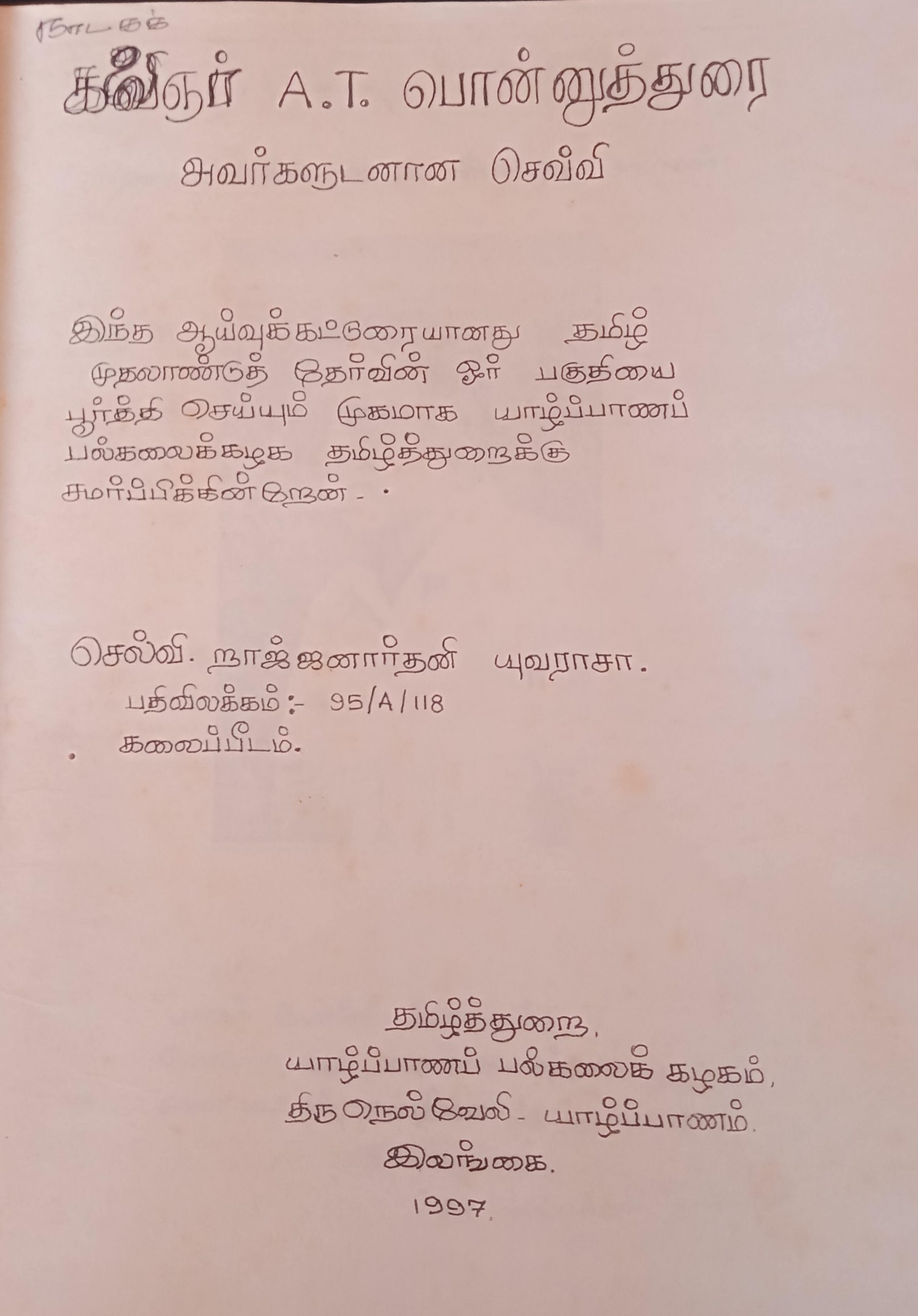 நாடகக் கலைஞர் ஏ.ரி.பொ. வெள்ளி விழா மலர்.