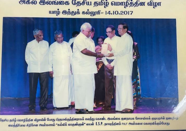 யாழ்ப்பாணக் கல்வி வலயப் பாடசாலைகளில் பொதப் பரீட்சைப் பெறுபேறுகளின் மீதான சாதனையாளர் கௌரவிப்பிற்காக பல லட்சம் ரூபாவினை வழங்கியதோடு, வலயத்தின் சிறந்த ஆசிரியர் கௌரவிப்பிற்காக தாமாகவே முன்வந்து புத்தகங்களையும் நிதியுதவியினையும் வழங்கினார்.