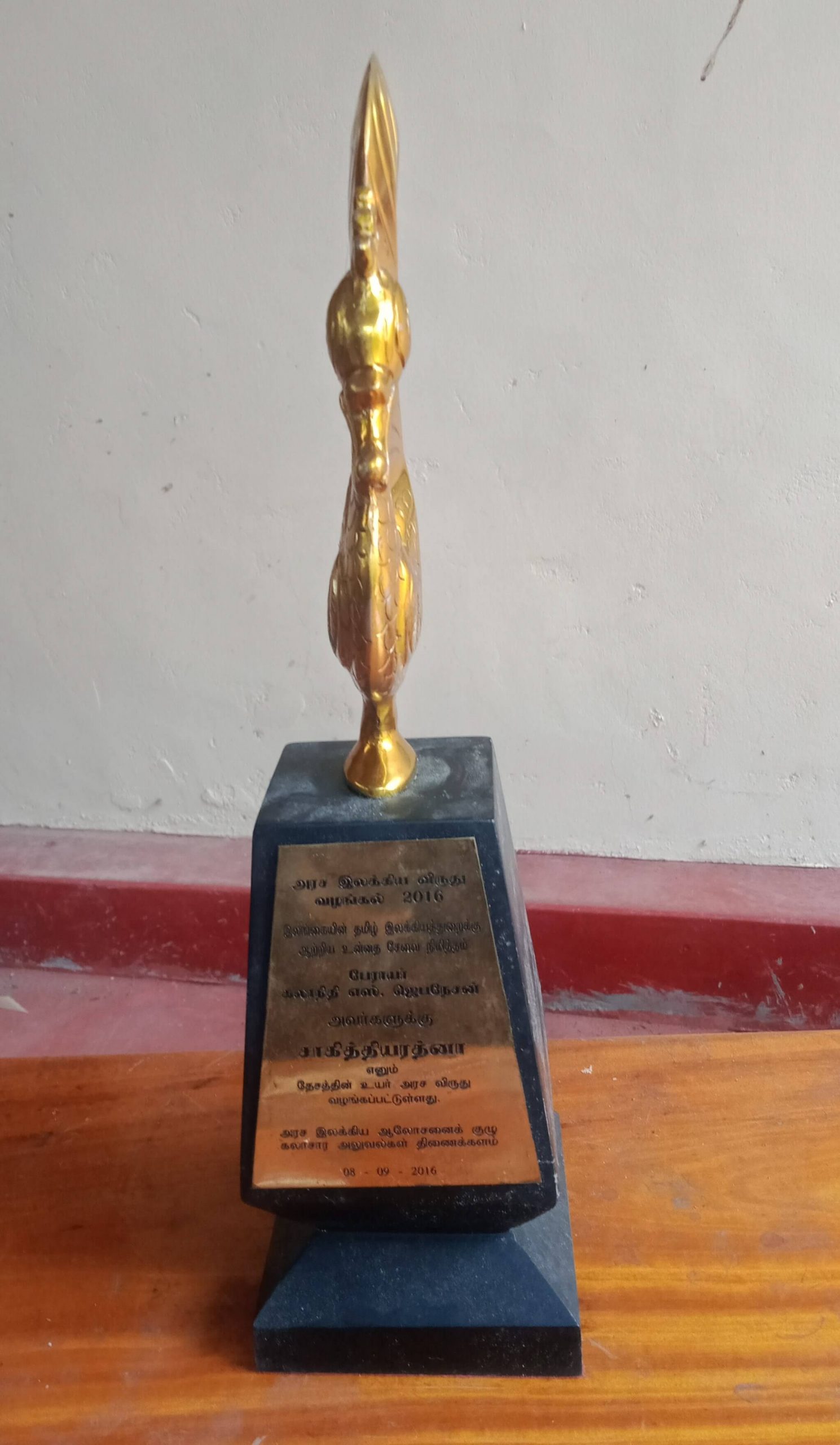 இவரின் சாதனைப் பயணத்தில் விருதுகளும் கௌரவங்களும் மேன்மையடை கின்றன. அந்த வகையில் இலங்கை கலாசார அலுவல்கள் திணைக்களம் 2016ஆம் ஆண்டு இலக்கியத்திற்குரிய உயர் விருதான வாழ்நாட்சாதனையாளர் சாகித்திய ரத்னா என்னும் விருதினை வழங்கி கௌரவித்துள்ளனர்.  2012 இல் சென்னைப் பாரதியார் சங்கமும் கொழும்பு தமிழ்ச் சங்கமும் இணைந்து கொழும்பு நகரில் நடத்திய பாரதியார் விழாவில்  பாரதியார் விருது லழங்கி கௌரவித்தனர். 2011 இல் மன்னார் மறைமாவட்ட சமூகத்தொடர்பு அருட்பணி மையம் வழங்கிய கலையருவி விருது, 2006இல் கொழும்பு கம்பன் கழகம் நடத்திய கம்பன் விழாவில் தமிழ்த்தொண்டினைப் பாராட்டி கௌரவ விருது, தமிழ்நாடு கோயம்புத்தூரில் 2010 இல் நடைபெற்ற உலகத் தமிழ் செம்மொழி மாநாட்டில் கலந்து ஆய்வுக்கட்டுரை சமர்ப்பித்தமைக்கான நினைவுப் பரிசில் மாண்புமிகு தமிழ் நாட்டின் முன்னாள் முதலமைச்சர் டாக்டர் மு.கருணாநிதி அவர்களால் வழங்கப்பட்டது. கே. டானியல் எழுதிய கானல் என்னும் நாவலை ஆசையபந என்ற தலைப்பில் அங்கிலத்தில் மொழிபெயர்த்தமைக்காக கலாசார அலுவல்கள் திணைக்களத்தினால் சிறந்த நாவல் மொழிபெயர்ப்பிற்கான சாகித்திய மண்டல விருது வழங்கப்பட்டது.