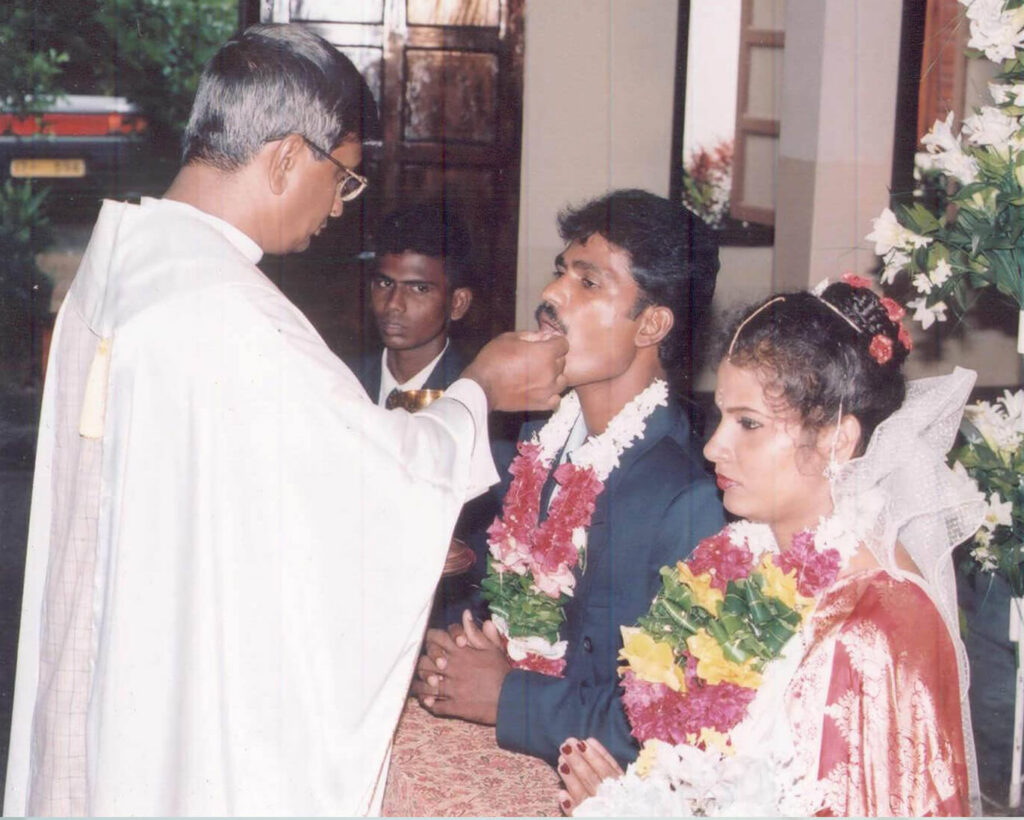 இன்பத்திலும் துன்பத்திலும் உடல் நலத்திலும் நோயிலும் நான் உமக்கு பிரமாணிக்கமய் வாழ்ந்து என் வாழ்நாள் எல்லாம் உம்மை நேசிக்கவும் பதிக்கவும் வாக்குப் பண்ணுகிறேன் எனும் வாக்குறுpயினை கணவனும் மனைவியும் அறிக்கையிட்டு தமது சம்மதத்தை தெரிவிக்க வேண்டும்.