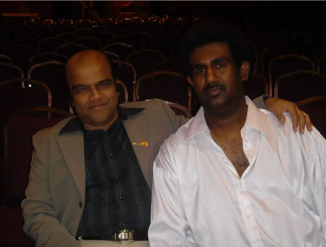 பின்னர் லண்டனில் வாழ்ந்து வந்த யாழ்ப்பாணம் ஈழநல்லூரைச் சேர்ந்த ‘கீபோட்டிஸ்ற்’ அரவிந்தன் அவர்களுடன் இணைந்து “மெகா ரியூனேர்ஸ்” என்னும் இசைக்குழுவொன்றினை உருவாக்கி அதன் முழுமையான ஸ்தாபகர்களாக இருவரும் அமைந்தனர். இவ்விசைக் குழுவினூடாக இருவரும் இருபது வருடங்கள் தொடர்ந்து பயணித்து பல்வேறு இசைச்சாதனைகளை ஏற்படுத்தினர்.