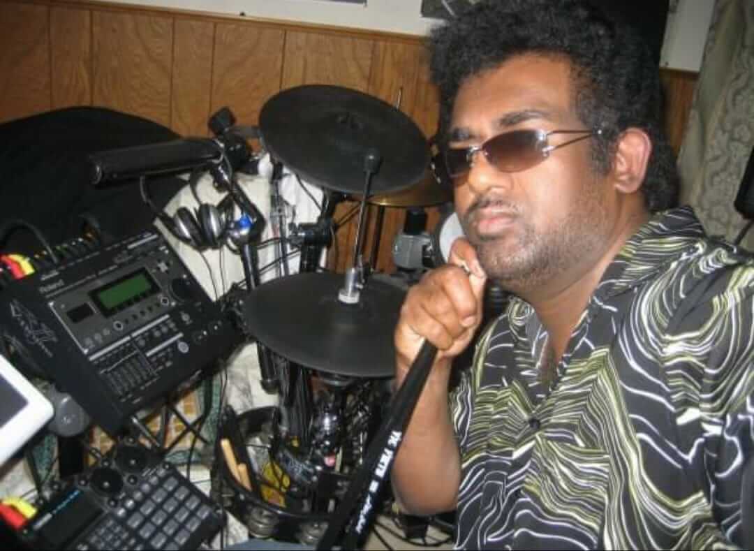 தனது பாடசாலைக் காலங்களில் இசைத்துறையில் பெரும் ஆர்வம் கொண்டிருந்தார். தனது சொந்த முயற்சியால் ‘டோலக், பொங்கோஸ்’ எனப்படும் இசைக்கருவிகளை இசைத்துப் பழகினார். இவரது கேள்விஞானம் இவரை இன்று ‘ட்றம்;ஸ்’ வாசிக்கும் மாபெரும் கலைஞனாக வளர்த்திருக்கின்றது.