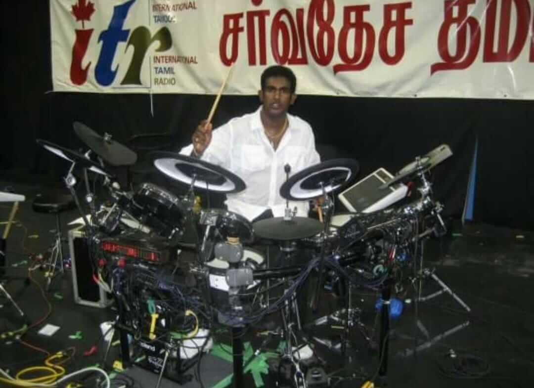 1984ஆம் ஆண்டு கனடா நாட்டிற்கு புலம் பெயர்ந்த இவர் ரொரன்ரோவினை வாழ்விடமாக கொண்டார். ஆரம்பத்தில் கனேடிய மேலைத்தேய இசைக்குழுக் களில் ‘ட்றம்ஸ்’ வாசிக்கும் கலைஞனாக இருந்த இவருடைய மனதில் ஏன் தமிழில் இத்தகையதொரு இசைப்பரிமானத்தை ஏற்படுத்த முடியாது என்னும் எண்ண அலைகள் மனதில் தோன்றின. இச்சிந்தனை தமிழ் இசைக்கலையில் மிகச் சிறந்த ட்றம்ஸ் வாத்தியக் கலைஞனாக முகிழ்த்தெழ வைத்தது.