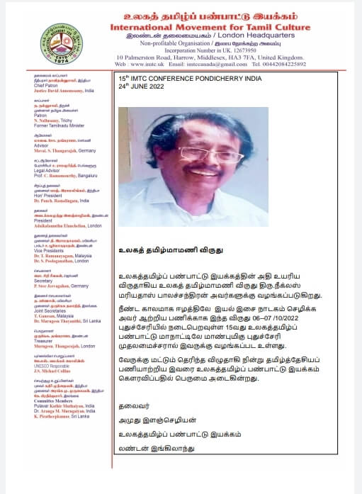 | 15 | இசைத்தமிழன் | பிரான்ஸ் பன்னாட்டு விருது | |