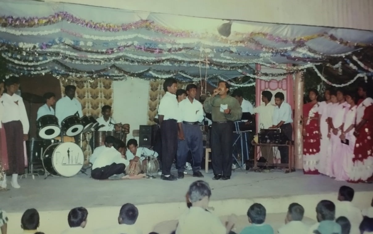 இளவாலை புனித கென்றியரசர் பாடசாலையில் நாடகப் பேராசன் P.யு.ஊ ஆனந்தராஜா அவர்களிடம் நாடகம் பயின்றவர்.. அகில இலங்கை ரீதியான நாடகபோட்டியில் பங்குபற்றுவதற்காக ஆசிரியர் நெறியாள்கை செய்த ஷேக்ஸ்பியரின் மக்பெத் நாடகத்தில் நடித்தார். ஆரம்பத்தில் கள்ளன், பாங்கொக் போன்ற சிறிய பாத்திரங்கள் ஏற்ற இவரின் நடிப்பாற்றலை பார்த்த ஆங்கில விரிவுரையாளர் சேமசுந்தரம் அவர்கள் நாடகத்தின் பிரதான பாத்திரமான ‘மாக்பெத்’ ஆக இவரை நடிக்கவைத்தார். இந்நாடகம் போட்டியில் முதற் பரிசைபெற்றது இவ்வாறு பாடசலை மேடையேற்றிய ஓதெல்லோ, யூலியசீசர், வெனிஸ் நகர வணிகன் ஆகிய நாடகங்களிலும் பிரதான பாத்திரங்களேற்று கலைஞர் சிறப்புசெய்தார்.