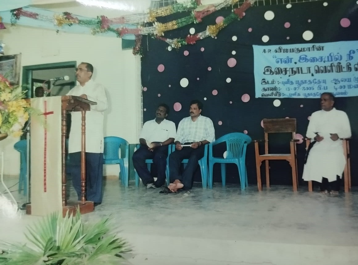 இசைஞானமிக்க பாரம்பரியத்தில் பிறந்த கலைஞன் விஜயகுமார் சிறுவய திலிருந்தே பாடவல்வராக ஆர்மோனியம், ஓகன் போன்ற வாத்தியங்களை சிறப்பாககையாளுபவராக விளங்கி வருகின்றார். இசையமைப்பில் தீவரமாக இயங்கிவரும் கலைஞர் இதுவரை 250 வரயான பாடல்களுக்கு இசையமத்துள்ளார். பெரும்பாலான பாடல்களை இவரேபாடியுள்ளார். இவர் 50புதிய பாடகர்களை அறிமுகம் செய்துள்ளார். ARB புரடக்ஷன் என்ற நிறுவனத்தை ஆரம்பத்து 13 கிறுஸ்தவ பாடல் இறுவெட்டுகளை தயாரித்து வெளியிட்டுள்ளார். பனிப்பூக்கள், உனைநினைத்தேன்தாயே, என்இதயநாதம், நன்றியினால் பாடுகிறேன், என் இசையில் நீ, தாளயம்பதிபூக்கள், படைத்தவன் மடியில்,என் வாழ்வின் ஒளி நீ என்பன அவற்றில் சிலவாகும். புனித கென்றியரசர் உட்பட பல பாடசாலைகளின் பான்ட் வாத்தியப் பயிற்றுனராகத் திகளும் கலைஞர் பலமாணவர்களுக்குஓகன் இசையைகற்பித்துவருகின்றார்.