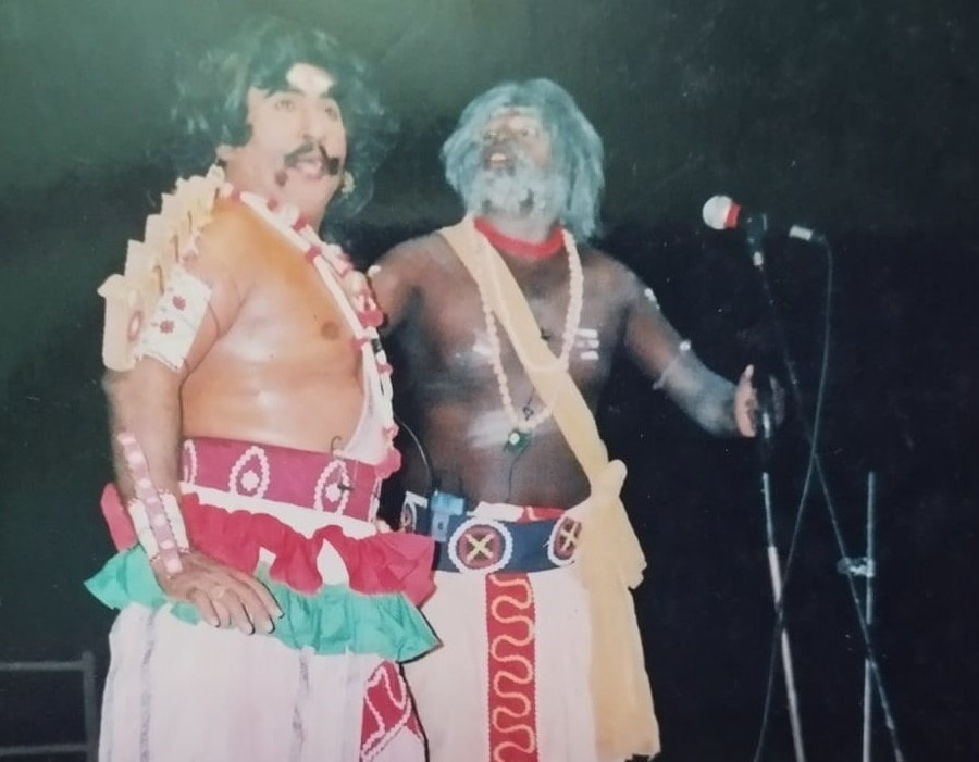 யாழ்ப்பாணம் நாடக அரங்கக் கல்லூரி மேடையேற்றிய P.யு.ஊ ஆனந்தராஜாவின் ‘இருட்டினில் குருட்டாட்டம் என்ற நாடகத்திலும் இவர் நடித்திருந்தார். 77;ல் இடம்பெற்ற கலவரத்தை மையப்படுத்தி எழுதப்பட்ட இந்நாடகத்தின் கெடுபிடியான சாதியக்காரனாக வேடமேற்ற கலைஞரின் நடிப்பை பத்திரகைகள் பராட்டியமை நினைவு கௌ;ளதக்கது.